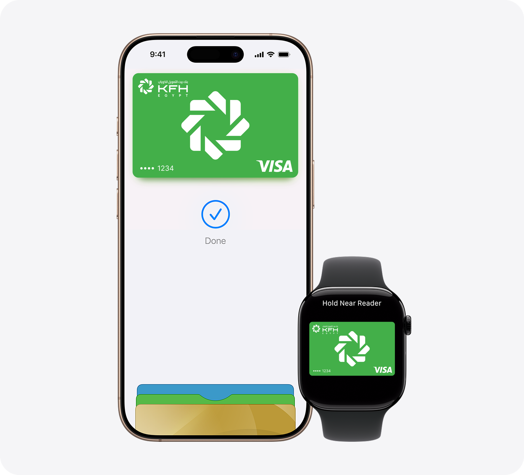 إذا أضفت بطاقة بنك بيت التمويل الكويتي مصر إلى تطبيق المحفظة من Apple في iPhone، فستتمكن من إضافتها إلى أجهزتك الأخرى من Apple بخطوة واحدة وبكل سهولة.