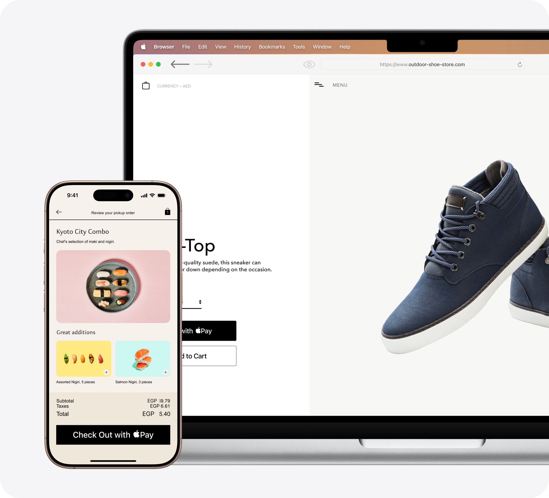 ابحث عن زر Apple Pay عند إتمام عملية الشراء باستخدام iPhone أو iPad أو Mac.