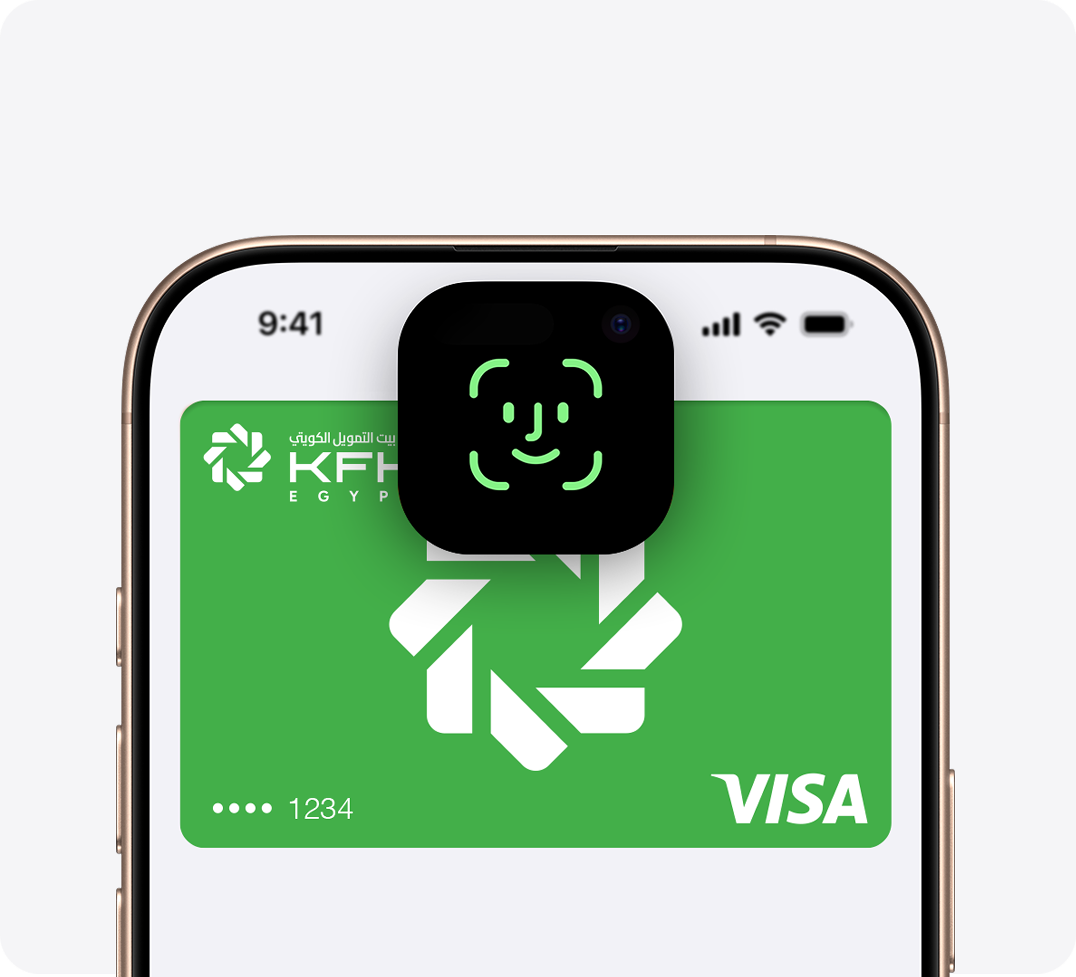 تتيح لك Apple Pay الاستغناء عن إدخال عنوانك أو رمز التحقق من البطاقة CVC عند الاستعداد للدفع، وهكذا يمكنك الدفع ببطاقة بنك بيت التمويل الكويتي مصر بمجرد نظرة أو لمسة.